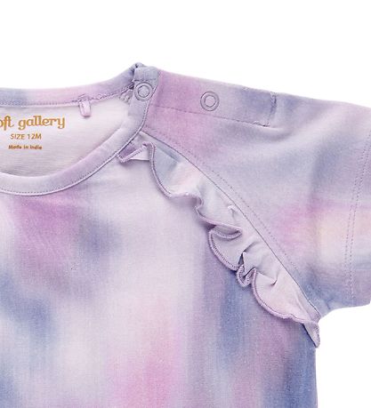 Joli t-shirt Soft Gallery aux pastel violet, bleu clair et rose.