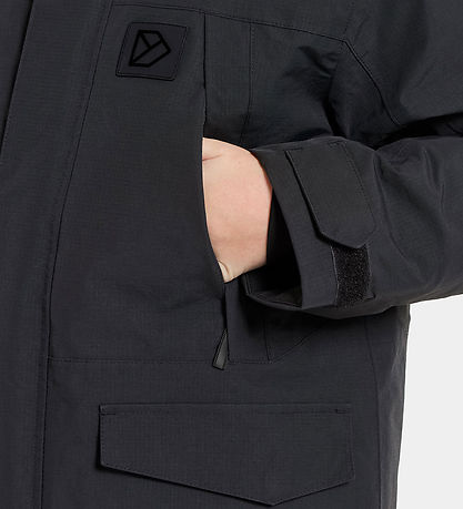 veste d'hiver Smart Didriksons noire. Veste d'hiver est ornée de logos et d'imprimés réfléchissants.