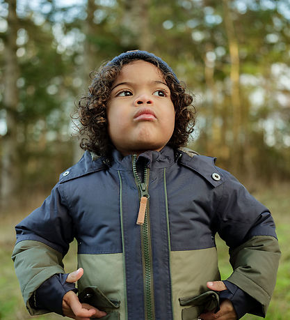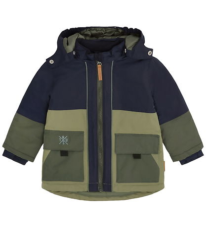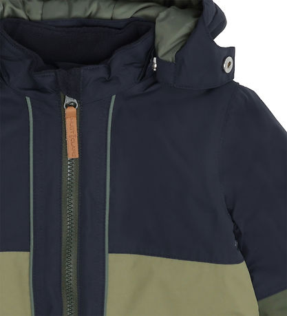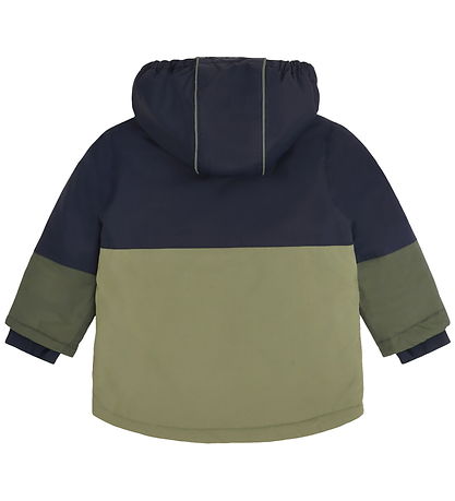 Belle veste d'hiver Hust and Claire bleu marine et vert militaire clair et foncé. Veste d'hiver est dotée de passepoils réfléchissants pratiques et de détails bien placés.