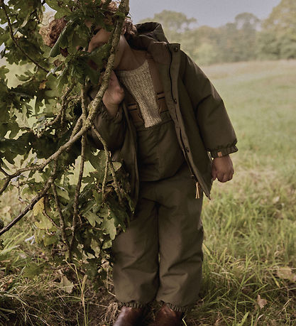 veste d'hiver Smart Lil' Atelier vert militaire foncé. Veste d'hiver est ornée d'imprimés et de détails réfléchissants bien placés.