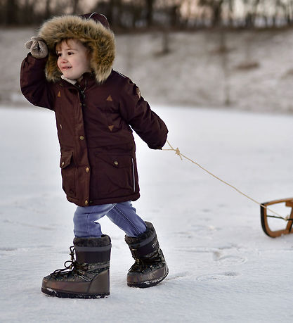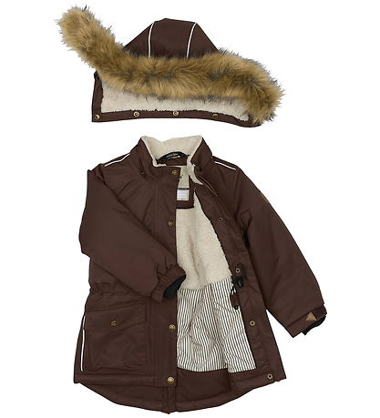 Belle veste d'hiver Mikk-Line dans une teinte foncé et brûlée avec des tailles en cuir et des détails réfléchissants.