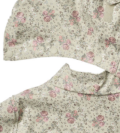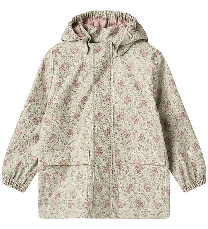 Belle veste imperméable Wheat en PU vert clair avec un imprimé floral allover dans des tons rose, blanc et vert.