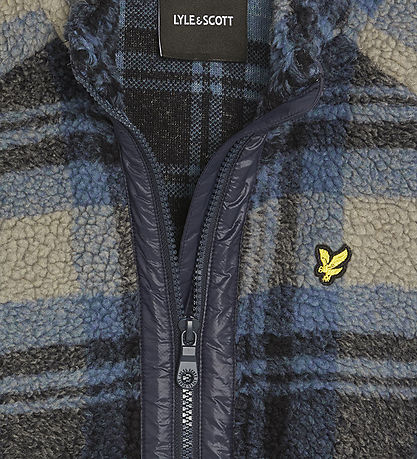 Veste polaire Smart Lyle & Scott avec un joli motif à carreaux bleu, bleu marine et beige. Confectionnée en polaire pilou douce, elle lui confère un aspect structuré.