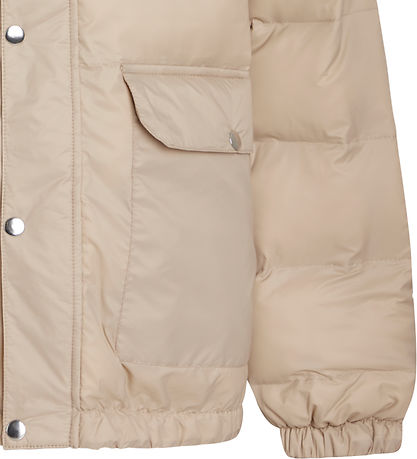 Ravissante veste rembourrée Grunt de couleur beige de couleur unie avec surpiqûres horizontales.