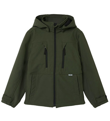 Veste softshell Smart Name It vert militaire avec fermetures noir.