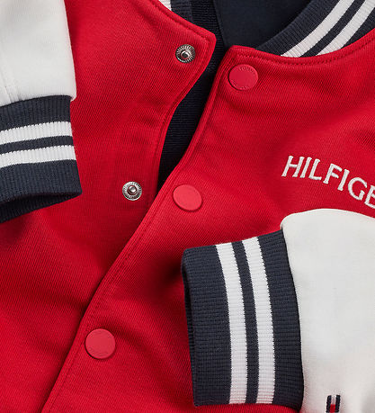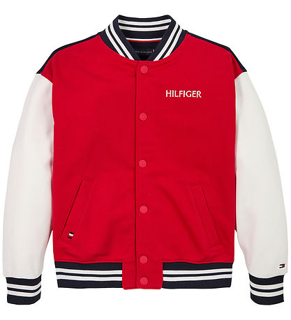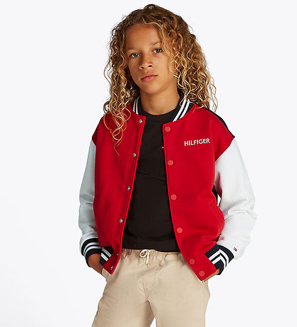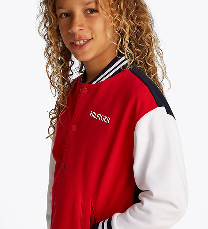 Superbe veste d'été Tommy Hilfiger rouge avec des couleurs contrastées sur les manches et un logo sur le devant. Son style sportif apporte une touche tendance à toute garde-robe.