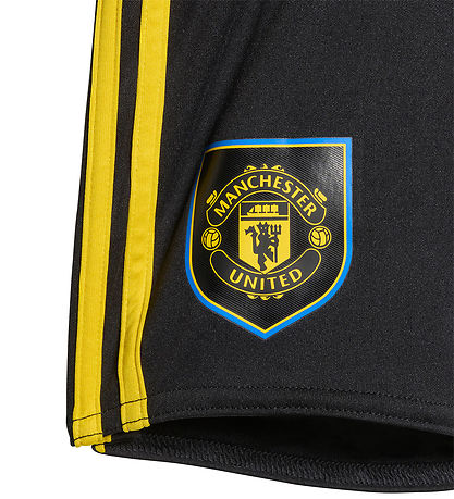 Superbe vêtements de football adidas Originals noire avec des détails bleus et jaunes. Sur le devant, le maillot imprimé le logo du club anglais de Manchester United. Ensemble s'inspire de la troisième set de l'équipe lors de la saison 2025/2026.