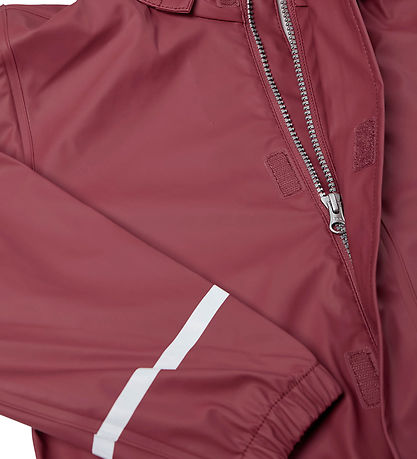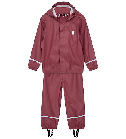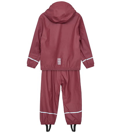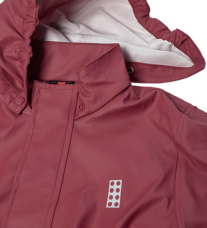 Ensemble de pluie Smart LEGO® Wear rose foncé composé d'une veste imperméable et d' un pantalon de pluie. Le Vêtements de pluie est doté de réflecteurs bien placés.