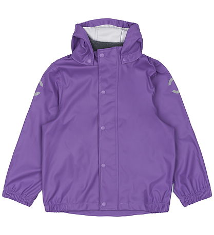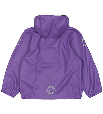 Joli vêtement de pluie Mikk-Line composé d' un pantalon de pluie et d'une veste imperméable dans de couleur unie avec des détails réfléchissants et des logos bien placés.