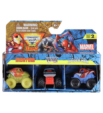 Cool voitures Monster Jam vendues en 3 Pack, inspirées d' Iron Man, Venom et Spider-Man. Des voitures détaillées aux designs colorés inspirés des célèbres caractères de Marvel. Parfaites pour les petits passionnés de Monster Jam.