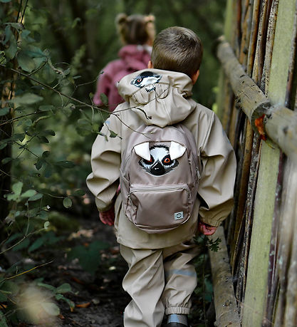 Sac à dos Smart Mikk-Line en beige avec un joli imprimé animal et des applications d'oreilles. Le sac à dos Mikk-Line s'ouvre avec une fermeture éclair en haut, et à l'intérieur il y a un grand Rum avec une poche à l'arrière. Le sac à dos possède un Rum avant qui s'ouvre avec une fermeture éclair pour rangement par exemple : un panier-repas. Le Sac à dos est doublé de textile jaune à l'intérieur.