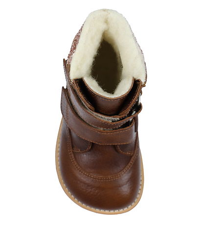 Les bottes d'hiver Angulus sont dotées de deux sangles avec velcro sur le devant, qui peuvent être facilement ajustées rapidement. À l'intérieur, les bottes d'hiver ont une adorable doublure en laine et une membrane Tex dans la couche intermédiaire, qui est 100 % imperméable, mais laisse en même temps le pied respirer et crée un bon climat pour le pied.