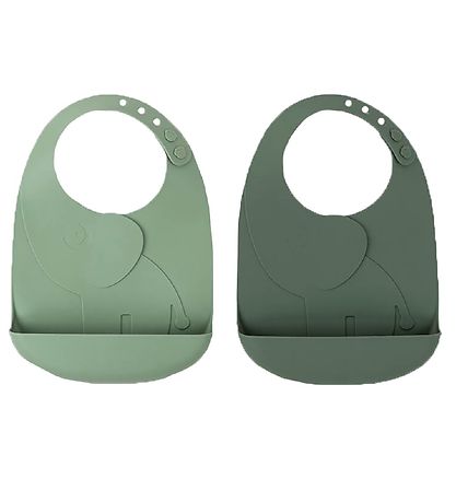 bavoirs Smart Done by Deer vendus par 2 Pack pratiques en vert clair et vert, tous deux avec l'éléphant Elphee sur le devant.