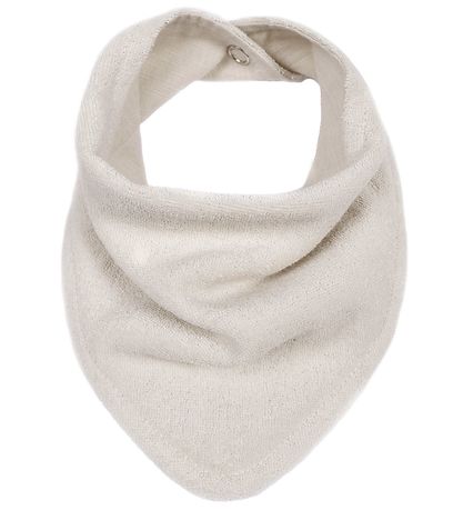 Magnifique bavoir bandana Pine Cone en tissu-éponge ivoire blanc sur le devant et beige avec un motif à pois gris à l'intérieur.