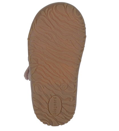 Les Bisgaard se ferment sur le cou-de-pied à l'aide de deux bandes Velcro afin de pouvoir être facilement ajustées au pied de l'enfant. À l'intérieur, elles sont doublées de cuir souple et à l'arrière se trouve un talon fixe. La semelle intérieure est douce et amovible.