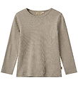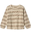 Charmant blouse Wheat beige à manches bleu marine. Sur le devant, un ours est imprimé avec l'inscription « Brother Bear». Ce Chemisier présente une encolure tour et des manches longues.