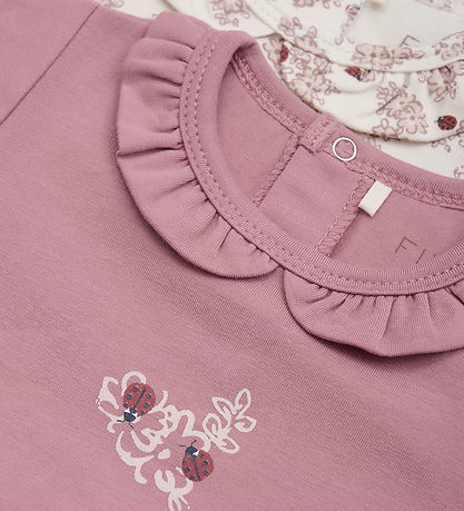 - Rose cendré avec un imprimé de coccinelles sur des fleurs sur la poitrine en rose.