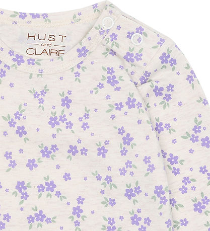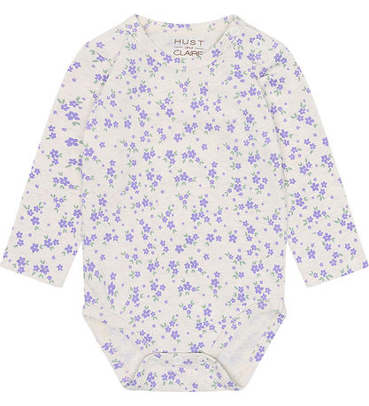 Magnifique body Hust and Claire dans un beige chiné clair orné de petits imprimés floraux violets et verts. Un excellent choix pour toute petite garde-robe de Hust and Claire.