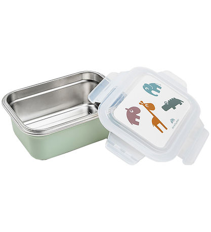 boîte à repas Fine Done by Deer en vert cendré avec d'adorables amis animaux imprimés sur le couvercle en différentes couleurs. La Boîte à repas a une capacité de 750 ml.
