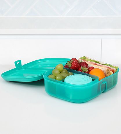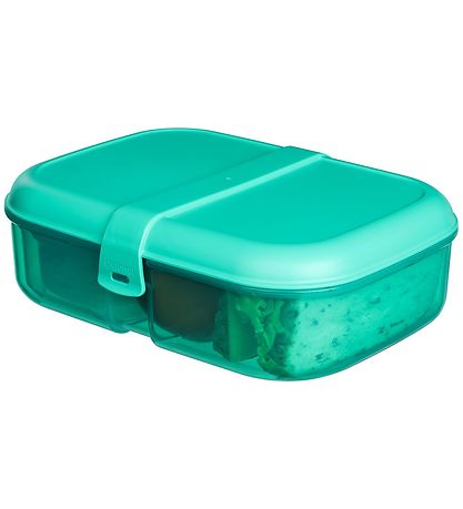 Délicieuse boîte à repas Sistema en plastique turquoise d'une capacité maximale de 1,1 l. Comprend également un petit récipient tour avec un couvercle turquoise d'une capacité maximale de 130 ml.