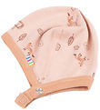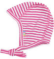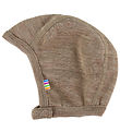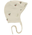 Le bonnet de bébé Konges Sløjd a une forme de tête tour et peut être serré autour du cou grâce à deux à cordon. Dans l'ouverture, il y a un bord côtelé étroit tout autour.