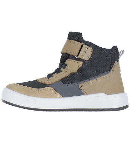 Les bottes Superfit sont un modèle mi-haut qui monte au-dessus de la cheville. Bottes sont dotées de lacets élastiques à l'avant et d'une fermeture Velcro sur le dessus. L'intérieur est doublé de textile doux et les semelles intérieures sont souples. Les semelles extérieures, marron clair, sont fabriquées dans un matériau léger et flexible.