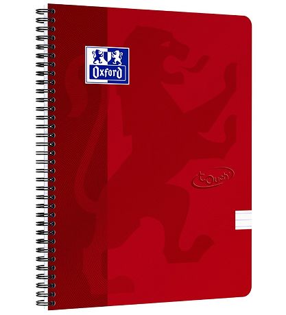 carnet Oxford Smart avec une coque souple laminée rouge et un dos spiralé noir. Sur le devant se trouve un grand lion dans les tons rouges et un logo Oxford dans le coin supérieur gauche.