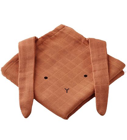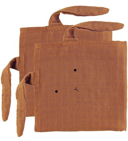Magnifiques carrés de mousseline Liewood vendues en 2 Pack en rose avec oreilles de lapin cousues, yeux et museau de yeux de lapin.