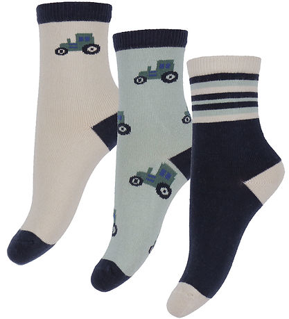 Charmantes chaussettes Name It, par 3 Pack. Elles sont disponibles dans des couleurs léger avec différents motifs : beige clair avec imprimé tracteur, bleu clair avec imprimé tracteur et bleu foncé avec a rayures sur la tige. Chaussettes bord côtelé fin assure un bon maintien.