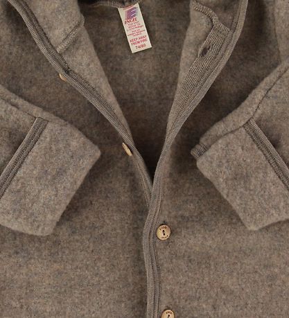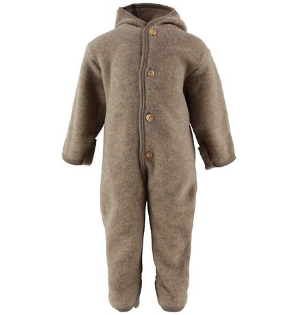 La combinaison pour poussette Engel a une capuche fixe et des manches longues et des jambes avec des poignets pratiques. Le costume a des bords côtelés étroits et s'ouvre sur le devant avec de jolis boutons en bois.