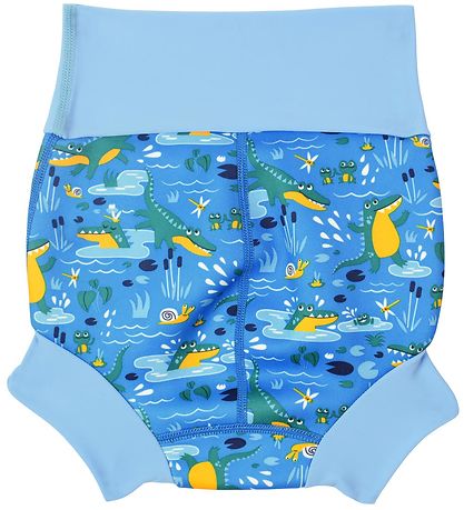 couche de natation Cute Splash About dans plusieurs nuances de bleu avec un imprimé de crocodiles verts.