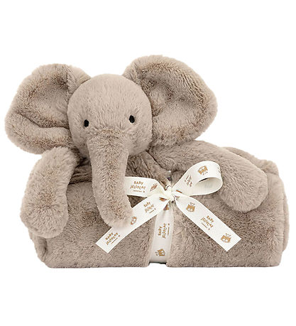 La couverture Jellycat est composée de deux épaisseurs de fourrure douce et lisse. Un détail adorable est orné d'une tête et de pattes d'éléphant dans un coin.