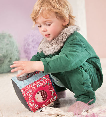 Le cube d'activités de Lilliputiens est en tissu et est doux et matelassé. Il contient au total sept activités différentes, comme du papier craquelé, un miroir, un cochon en trou amusant avec fonction hochet, des rabats sans reflet, des poignées, etc. Le cube d'activités est amusant à jouer avec le petit enfant et stimule ses sens..
