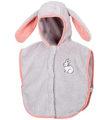 Le Souza s'enfile comme une cape et se ferme sur le devant par À boutons poussoirs continus. Il y a une étroite bordure rose autour de l'ouverture et le costume a une capuche Fast. Sur la capuche, il y a de jolies oreilles avec des détails roses, et sur le dos, il y a une jolie queue blanche. Le costume est fait de polyester doux.