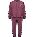 Adorable ensemble de jogging de Hummel dans une teinte violet foncé. L'ensemble sweat se compose d'un gilet avec Hummel- chevrons en tons violets le long des manches et d'un petit logo brodé en violet clair sur la poitrine gauche et paire' un pantalon de jogging avec Hummel- chevrons en tons violets le long de l'extérieur des jambes du pantalon. et un petit logo brodé en violet clair en haut de la jambe gauche.