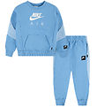 Adorable ensemble de jogging Nike dans une teinte gris chaud, composé d'un sweat-shirt et d' un pantalon de jogging, avec broderie blanche de la marque et du logo sur la poitrine et la cuisse gauche, respectivement. Ensemble est doté de passepoils décoratifs jaunes, qui offrent un joli contraste.