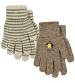Gants fins Konges Sløjd vendus par 2 Pack. L'un beige avec un imprimé cerises brodé, l'autre à a rayures roses et violettes.