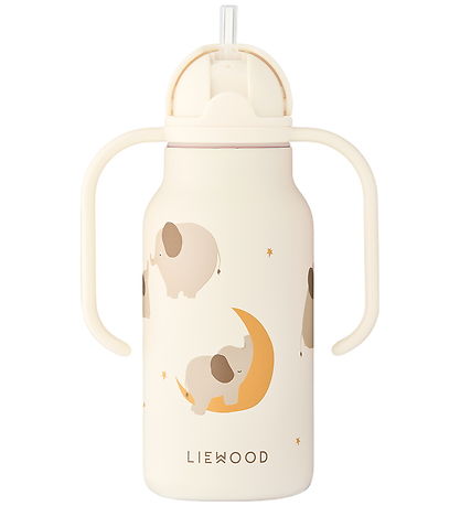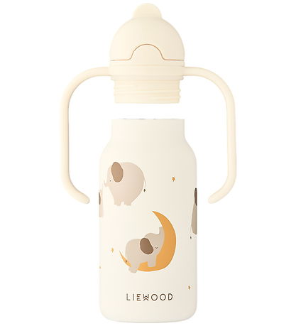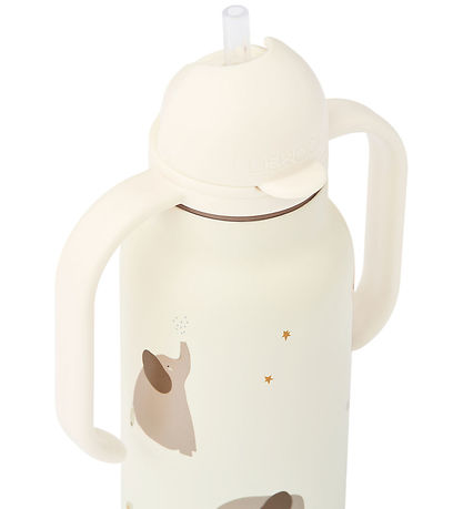Jolie gourde Liewood beige avec un joli imprimé d'éléphants endormis.