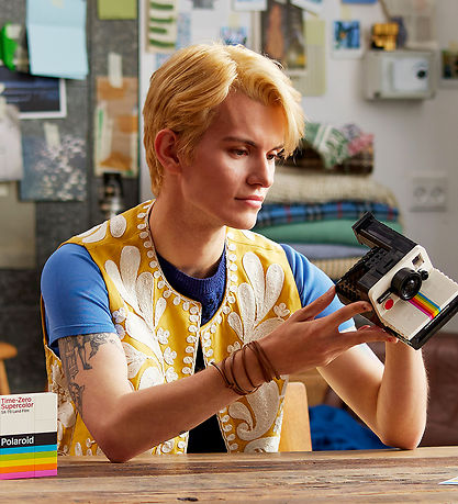 Incroyable set LEGO® Ideas avec un total de 516 blocs de construction qui peuvent être assemblées pour former un modèle d'appareil photo Polaroid OneStep SX-70.