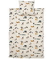 literie fine Liewood beige avec un imprimé coloré sur toute la surface de divers animal de safari.