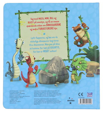 Rejoignez Mazu, Mini, Bill et Rocky dans une conte de fée passionnante et apprenez plein de choses sur les dinosaures et autres animaux préhistoriques. Soulevez les rabats et découvrez les véritables dinosaures qui se cachent derrière nos quatre amis dinosaures. Attention cependant à ne pas trop vous approcher de Giganto, il a très faim !