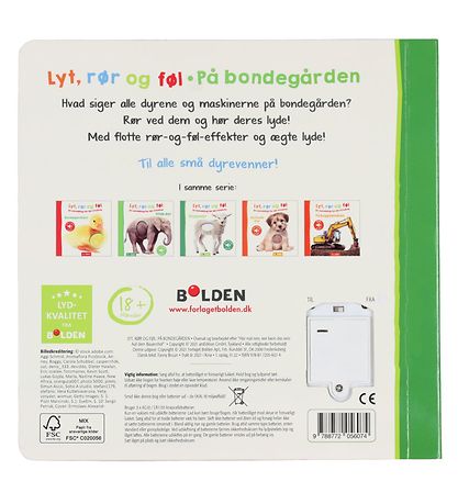 Forlaget Bolden le livre est un livre amusant à écouter, à toucher et à ressentir sur la vie dans une ferme. Il contient d'excellents effets tactiles ainsi que de vrais sons. Le Livre stimule les sens et développe le langage de l'enfant.