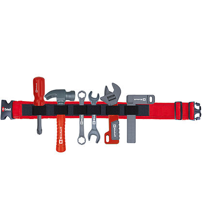 Ceinture à outils Smart Einhell en rouge avec de jolis détails. Ensemble comprend divers outils tels que :