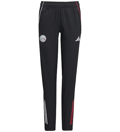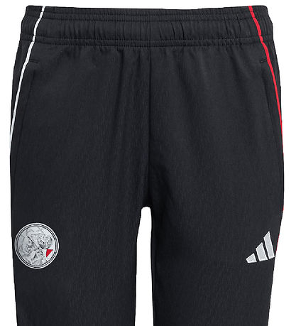 pantalon de survêtement classique adidas Performance noir avec d'élégantes rayures contrastées rouges et blanches. Le adidas Performance orne la cuisse, tandis que l'emblème de l'Ajax est présent sur l'autre cuisse.