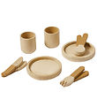 Le Flexa contient divers services qui favorisent le jeu créatif. Avec une combinaison d'assiettes, de tasses et de couvert, les petits chefs peuvent explorer le monde de la cuisine. Ensemble est conçu avec des couleurs naturelles qui s'adaptent à n'importe quelle aire de jeu et offre de nombreuses heures de jeu de rôle créatif et amusant, qui aide à développer l'imagination, la coordination main/oeil, la motricité sociale et fine de l'enfant.