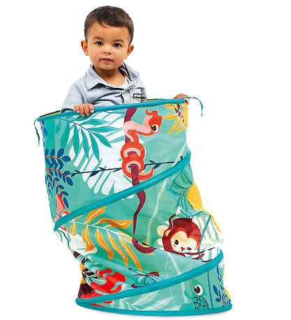 tente de jeu pop-up Fun Ludi avec tunnel et ballons en vert menthe et jaune et avec imprimé jungle.