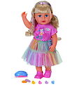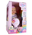 La poupée Baby Born a un corps doux au toucher et est livrée avec 10 fonctions « magiques », car elle peut 1. manger, 2. boire, 3. faire pipi (à la fois pipi et grand), 4. faire pipi dans la couche 5. pleurer, 6. se baigner, 7. vider l'eau après un bain, 8. dormir, 9. ouvrir et fermer les yeux (tourner la tétine dans la poupée), 10. bouger. Toutes les fonctions fonctionnent sans utiliser de piles.