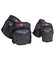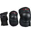 Les protections des genoux sont constituées de mousse EVA solide et de capsules en polyéthylène résistantes aux chocs qui sont fixées avec des rivets, qui protègent les genoux des impacts. Les capsules ont un design plat pour une longue durée de vie et une stabilité. Les protections sont fixées avec des sangles velcro réglables et des sangles velcro élastique afin qu'elles reste bien en place.