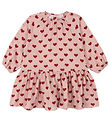Élégante robe Konges Sløjd de ivoire blanc avec structure en mousseline. La Robe a des manches courtes à volants et un délicat motif de nœud bleu. Le design est simple et élégant, ce qui rend la robe adaptée à diverses occasions.