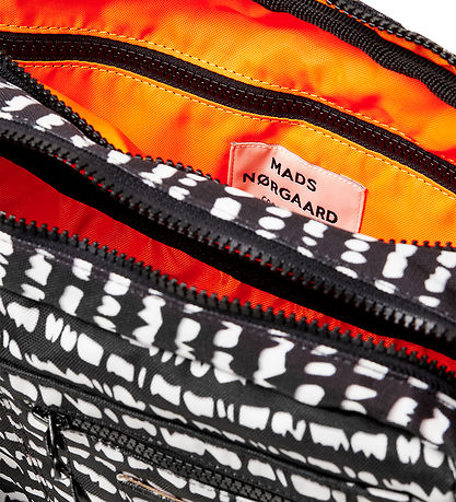 sac à bandoulière Smart Mads Nørgaard à motif noir et blanc avec une bandoulière noire.